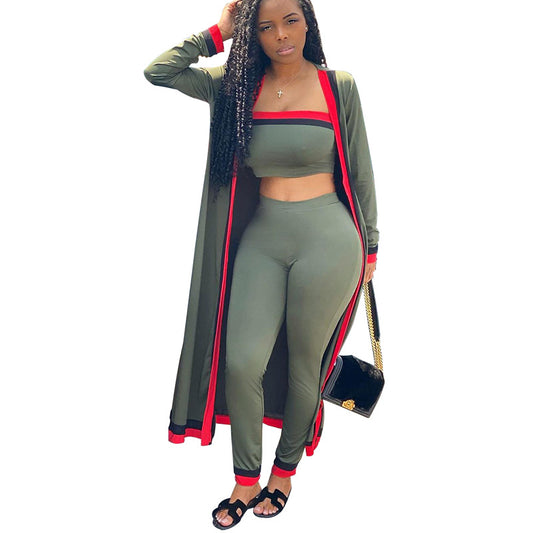 Women's Contrast Color Long Coat Three-piece Suit