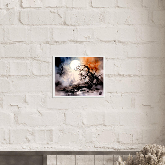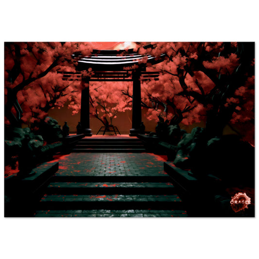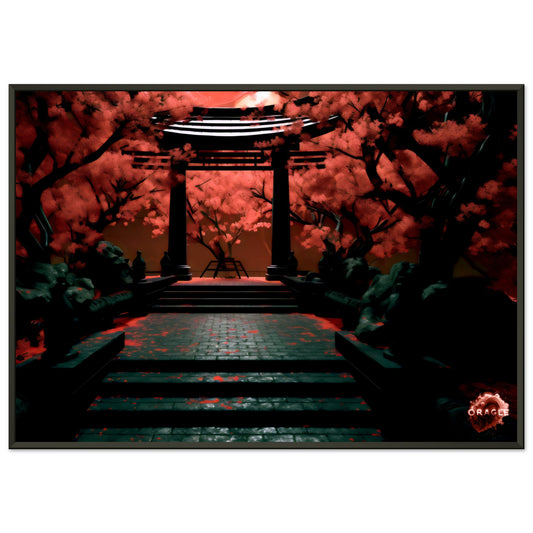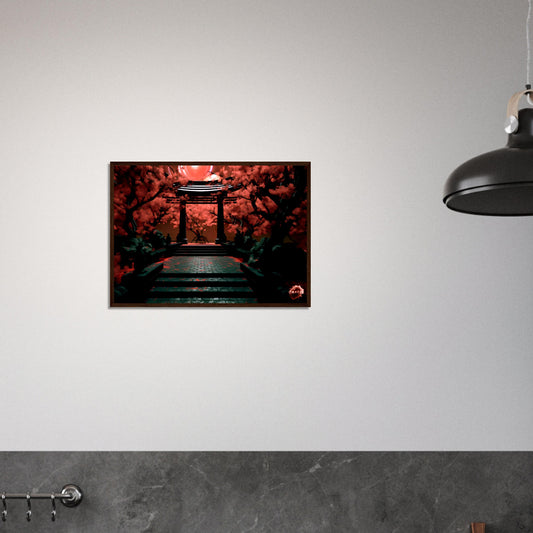 Crimson Nocturne: A Japanese Moonlit Tale- Premium Matte Paper Wooden Framed Poster