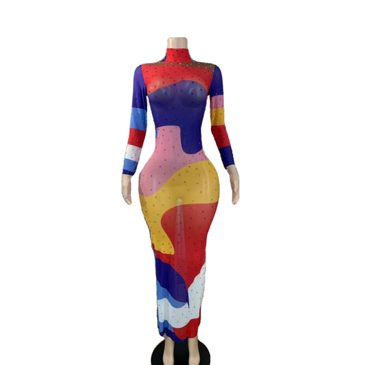 Women's Multi-color Long Sleeveless Dress