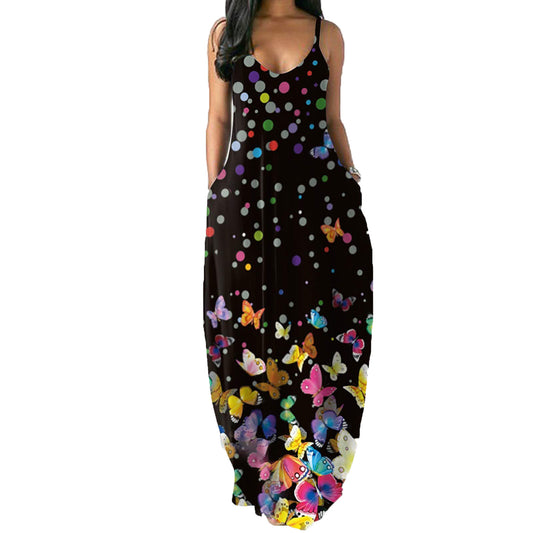 New Square-cut Collar Slimming Temperament Printed Backless Camisole Dress