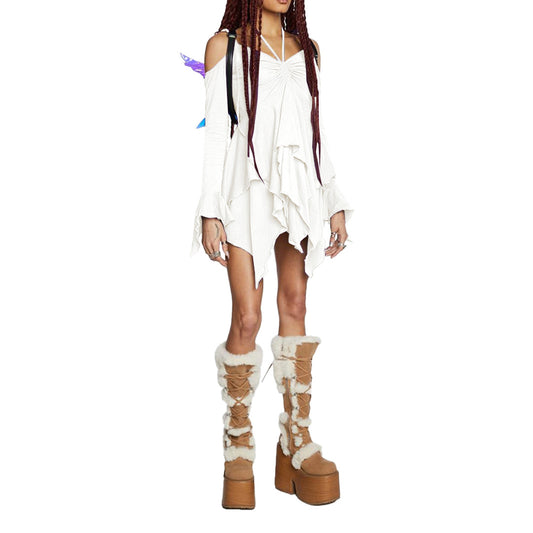 Pleating Halloween Performance Wear Irregular Spaghetti-strap Dress